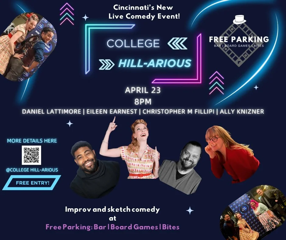 Back to All Events College Hill-Arious Thursday, April 23, 2026 8:00 PM 9:00 PM Free Parking Bar LLC 6200 Hamilton Avenue Cincinnati, OH, 45224 United States (map) Google Calendar ICS